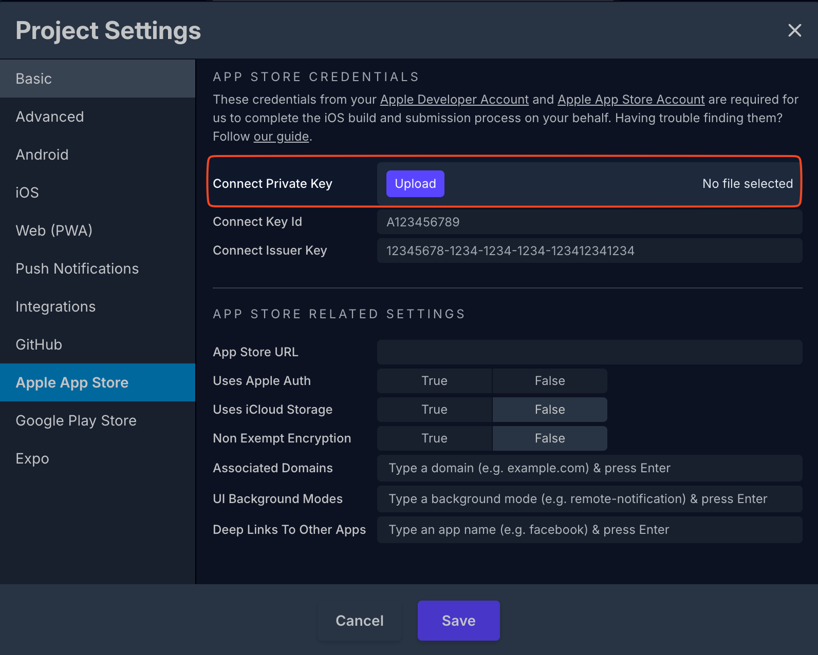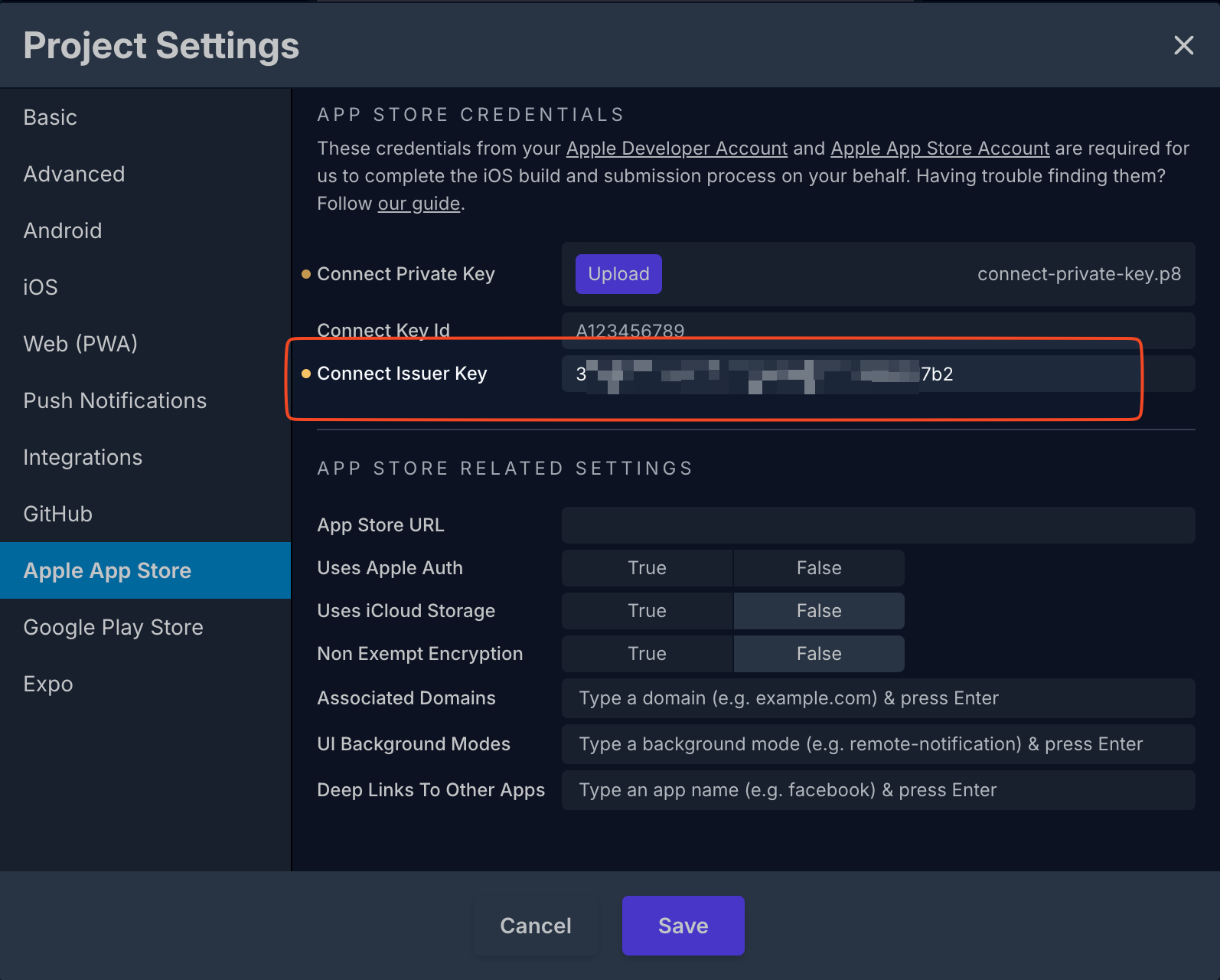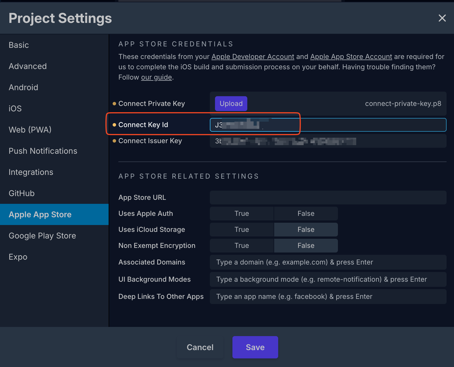 此時,你需要產生 API 金鑰並將其加入你的 Apple App Store 場景設定 Draftbit。